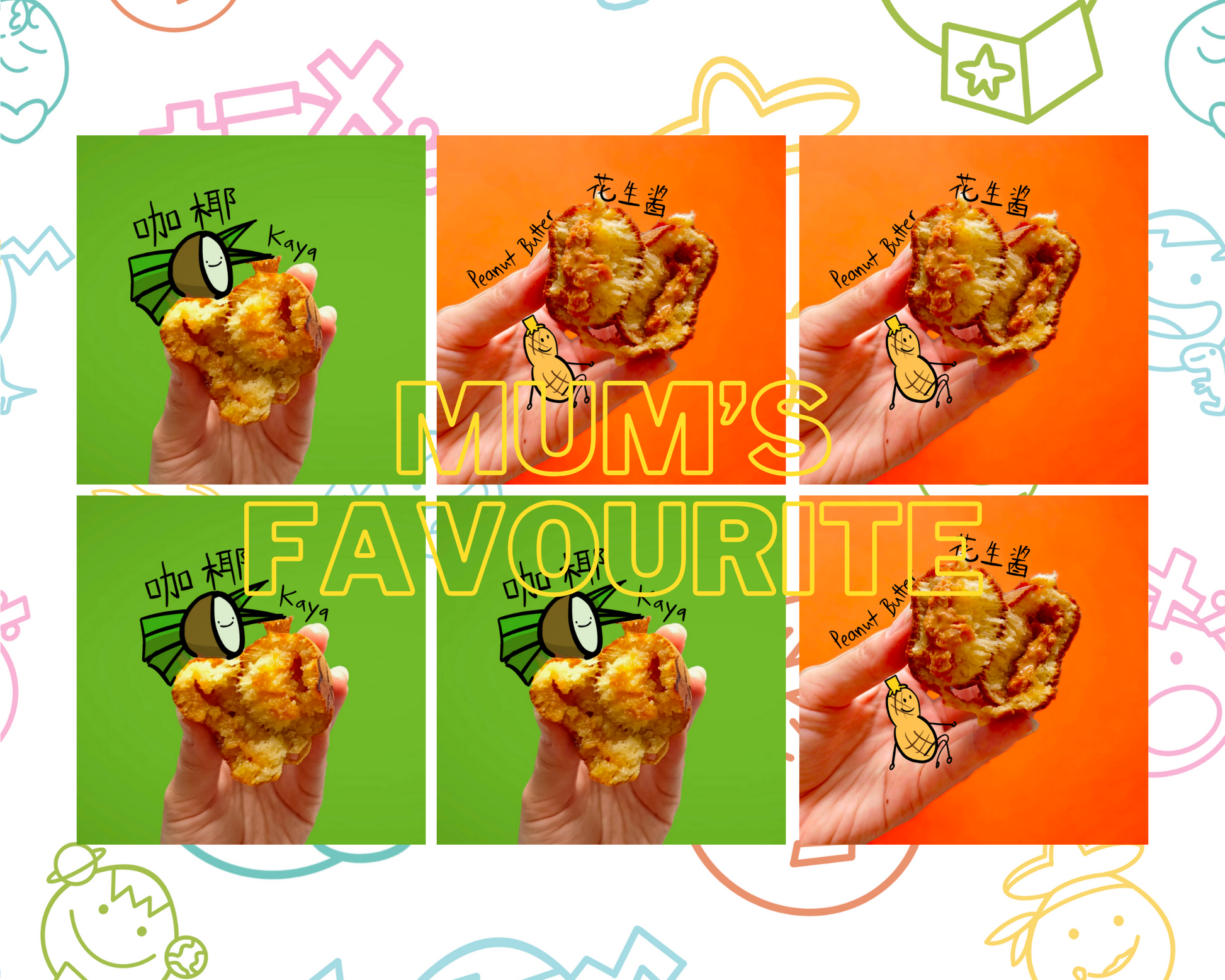 Introducing our "Mum's Favourite Box" - a delightful selection curated for you and your kopi/ teh kakis. Inside each box, you'll discover a symphony of flavours that capture the essence of home: 3 Golden Hainanese Kaya Filling Egg Cakes for a taste of tradition and 3 Peanut Butter Filling Egg Cakes for a creamy indulgence. Treat yourself or share the joy with our Mum's Favourite Box - because every bite is a reminder of love and comfort.